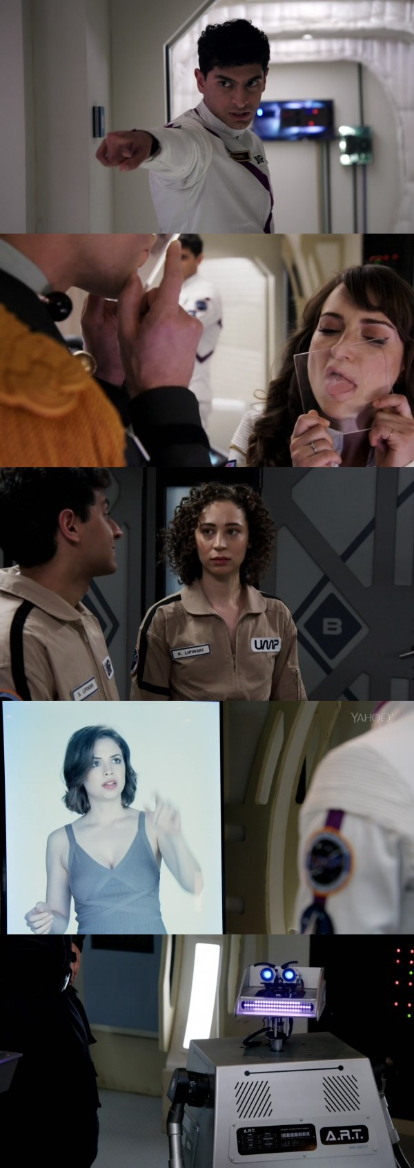Die Serie hatte schon verloren, als in der zweiten Minute Captain Rajev mit Hot Dogs auftaucht und sich dabei benimmt wie ein verwöhntes College Kind. Dazu eine wackelige Zoom-in-zoom-out-Kamera und 5 Euro-Sets. Aber es gibt einen geilen Roboter (A.R.T.) und ein geiles Monitor-Programm-Mädchen. Das erinnert alles ein wenig an Ijon Tichy, ist aber kein Ijon Tichy. Aber man gewöhnt sich dran und es gibt in der Folge einen unglaublich geilen Story- Twist. Ich schätze mal, ich werde mich daran gewöhnen müssen. Argh! Und am Ende gibt's noch mal einen geilen Twist. Argh! ![]() |