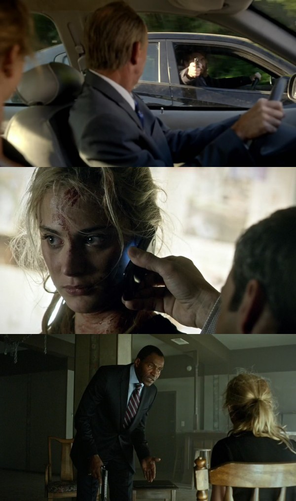 Da fährt der olle Zausel mit Gefangenen-Chloe also auf dieser total einsamen Landstraße und erzählt ein wenig Schwof, bevor die Baderen Bad Guys kommen, ihm eine Kugel verpassen und Chloe mitnehmen. Hmm. Stört mich an sich so gar nicht die Szene, nur die supereinsame Landstraße bzw. Autobahn. Ich glaube, das war diese eine Strecke, wo die alle ihre Filme drehen. Cobra 11 dreht ja auch immer auf der Fake-Autobahn-Strecke. Aber danach sehr geile Chloe-Schwester- Folter-Geschichte und geiles Afrika-Leoparden-Ding! ![]() |