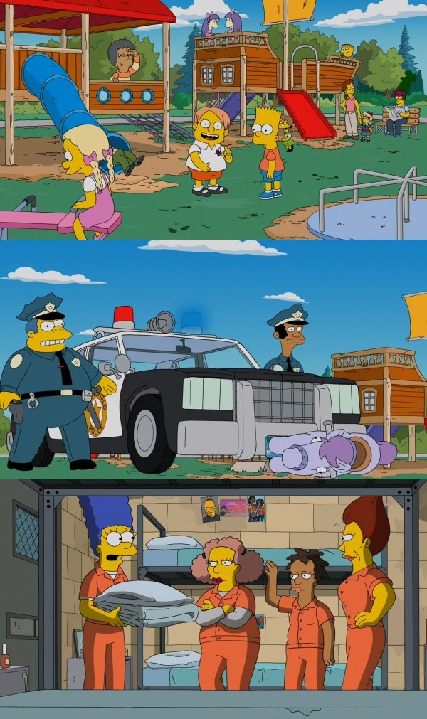 Das tolle an Popkulturellen Referenzen ist es ja immer, wenn einen etwas in der Darstellung sofort oder weniger sofort stark oder weniger stark an die Referenz erinnert. Wie der Titel es schon andeutet. Aber nix. Außer Marge in einem Frauenknast. ![]() |