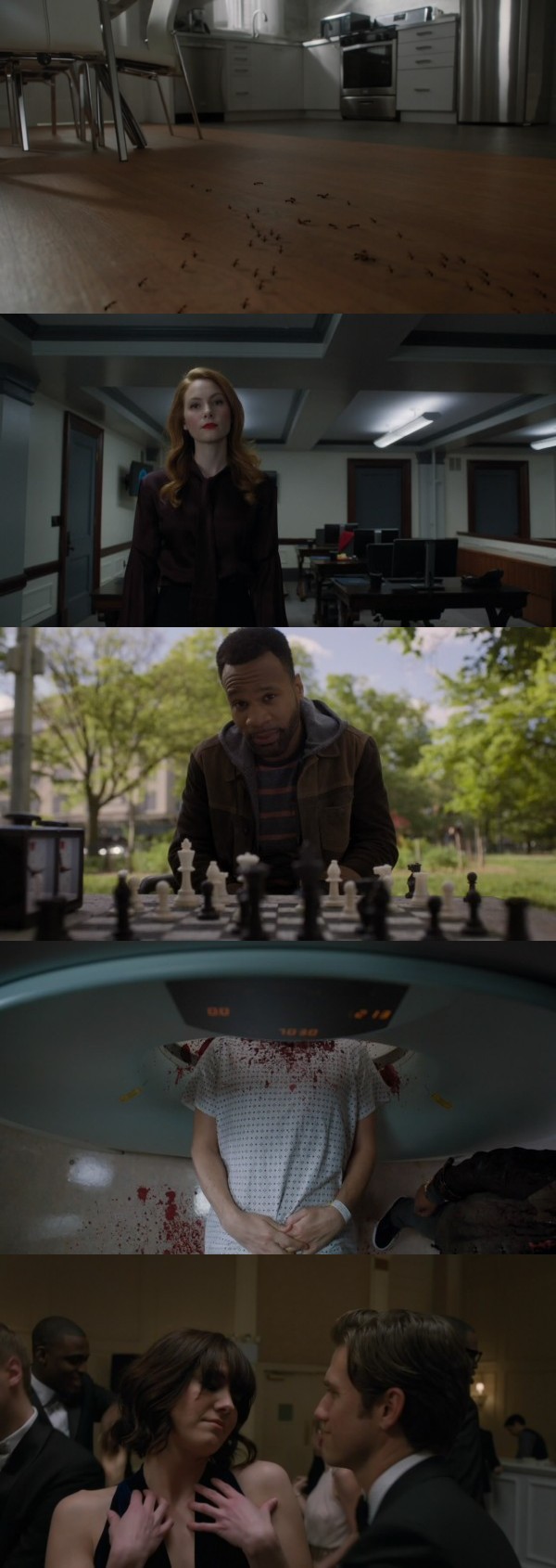 Ich wollte eigentlich noch mal die Prämisse der ersten Folge zusammen fassen, aber die Machen sind von selber noch mal auf die Idee gekommen. Some kind of meteor came down. No one knows where it's from. They shipped it off. So they could study it in Washington. Guess what? It's filled with space bugs. Now they're loose and eating peoples' brains. Poor Laurel only wants to make her documentaries. She's out of money. So she works for Luke, her brother. He's a Democratic senator. She listens to constituents complain Gareth is working for Red Wheatus, who is a senator A Southerner, Republican. A drunk Government is shutting down. Until they find a work-around. Deal they make looks like a slam-dunk, but space bugs crawl into Red's brain and start controlling him. He steals a Democrat and flips him to Republican. The shutdown happens. And now everybody's mad again. Laurel discovers Scarlett sleeping with her brother and it looks like Scarlett Probably has a space bug problem, too. You know your day was lousy. When somebody's head Explodes... on... you. ![]() Ich verstehe noch nicht das Konzept, welchen Leuten nun der Kopf explodiert und welchen nicht, ansonsten hat das Ding in der zweiten Folge richtig fahrt aufgenommen. Durch den Schachspieler und dessen Kopfexplodierenden Kumpel und auch der Krankenschwester die sich an Laurel gewendet hat, Kudos an die Tanzszene. Kann man eine Tanzszene im Politischen Washington mit den Outthere Brothers und Keith Sweat so gestalten, dass man sich nicht wie so oft bei solchen Szenen in Grund und Boden schämt? Kann man. Hier eindrucksvoll gezeigt. ![]() |