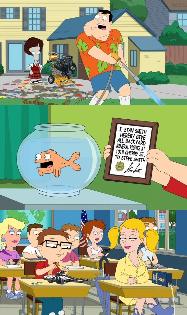 "Stan discovers a salt mine in the backyard, but Steve turns out to be the rightful owner of the land, and faces pressure from the family to sell out." ![]() |