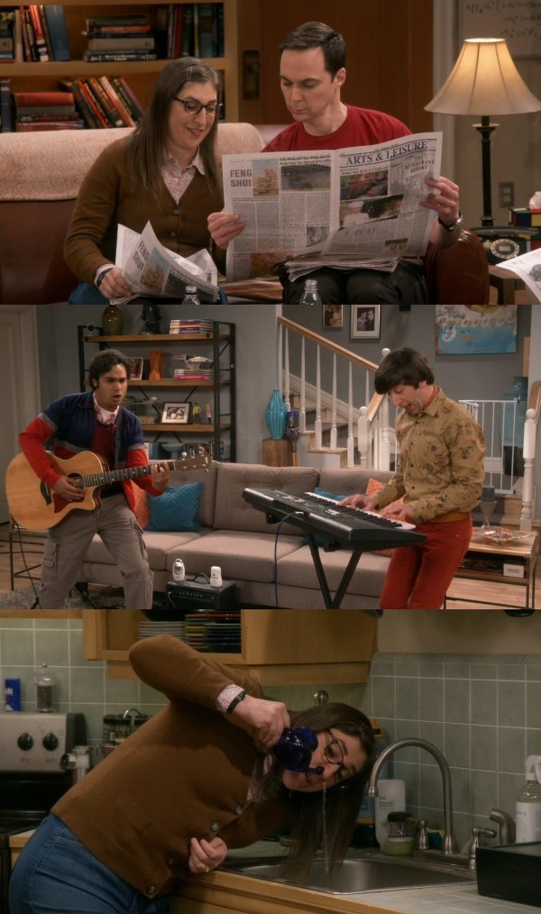 "Sheldon kicks Amy out to work solo, so she and Leonard bond during a series of science experiments; Howard is replaced by Bert in Footprints on the Moon; Penny proves to be a surprising source of scientific inspiration for Sheldon. Howard and Raj start a band." ![]() |