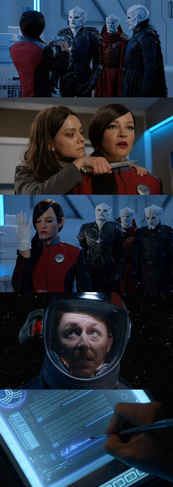 Oh, es geht doch weiter. Ich dachte, die letzten beiden Folgen oder die Folgen der letzten beiden Folgen werden nicht mehr erwähnt. Das Verhalten der Krill bzgl. des Urin-Tests (!) war drollig. Generall hat mir der Obermacker da gefallen. Dass das Mädchen nicht ganz koscher ist, konnten wir uns alle denken und auch, dass SIE die Waffe ist. Tolle Folge. You ever met a Xelayan before? ![]() |