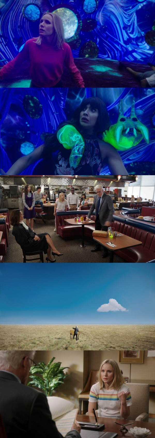 "Eleanor and the gang meet the judge at the crossroads of all dimensions, time and space to plead their case and Janet makes a reconnection." (IMDB) ![]() |