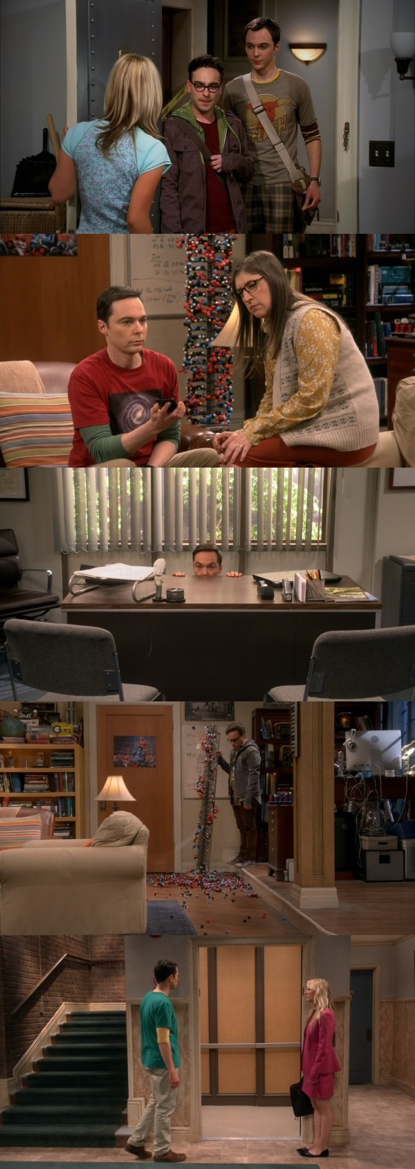 Ich habe ja schon lange spekuliert, ob sie zum Serienende den Fahrstuhl reparieren, der seit Folge 1 kaputt ist - Ja, haben sie. "Wie ist der eigentlich damals kaputt gegangen?!" Leonard hat zusammen mit Howard und Raj irgendwas in der Wohnung zusammengemixt, was anders reagiert hat als erwartet - das wollten die im Fahrstuhl nach unten bringen, als Sheldon kam, die drei aus dem Fahrstuhl rausgeschmissen hat, das Paket abstellte, Tür zu und Sekunden später hat's geknallt. ![]() |