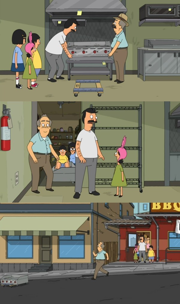 After my father retired, people thought it changed around here. They started coming less and less, and I got behind on bills. And one day, it was, it was just over. Maybe we should start paying our bills, Dad. Früher, also in früheren Staffeln war das immer mal wieder Thema, gerade die Miete bei Mr. Fischoeder und die Gästefrequenz im Restaurant. ![]() |