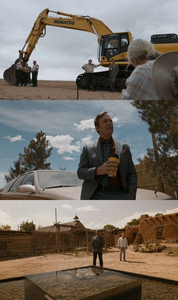 Hm, ich weiß nicht woran es genau liegt, dass die fünf Staffeln gebraucht haben um die Serie gut zu machen. Das einzige Indiz, was ich bei den Writer Credits gefunden habe, war, dass die bei Heather Marion aus 'Story Editor' einen 'Executive Story Editor' gemacht haben. Ansonsten die gleichen Schreiber. Und wie gehabt, jede Folge ein anderer. Und in dem schicken Brunnen in dem Mexikanischen Höllenloch würd ich wahrscheinlich den ganzen Tag drin sitzen. Nur mit einem Hut bekleidet. ![]() Wahrscheinlich liegt es daran, dass Jimmy jetzt endgültig Saul ist. |