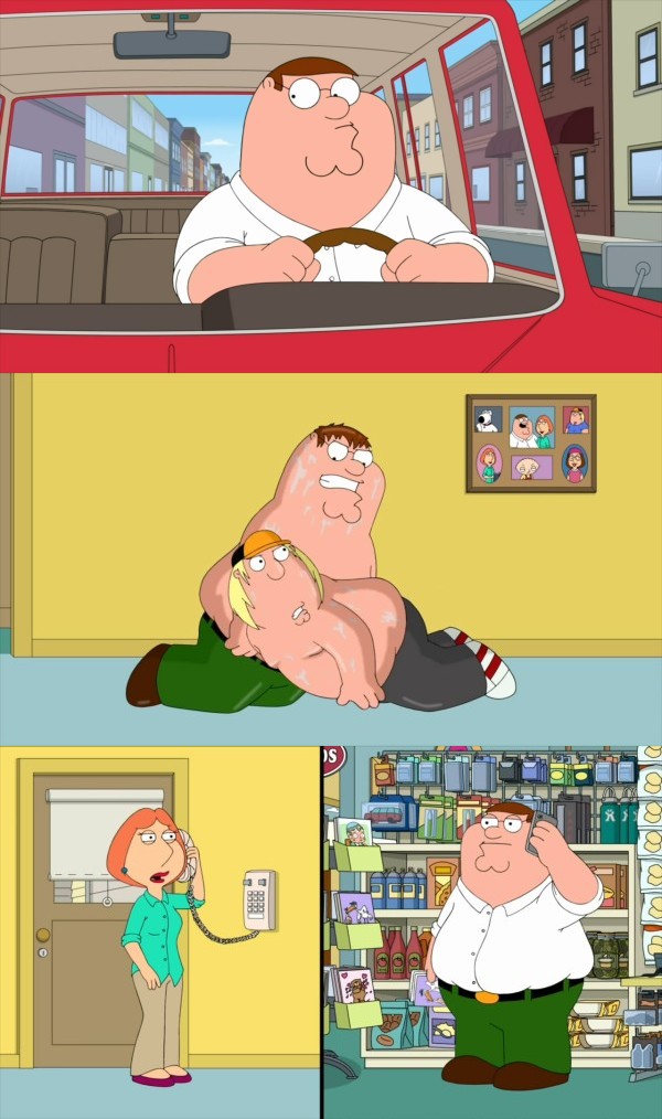 "Peter is told to work from home when his sweat becomes a liability; Stewie and Chris create a fake Kickstarter campaign with Brian to pay for the damages done to an electronics store." (IMDB) ![]() |