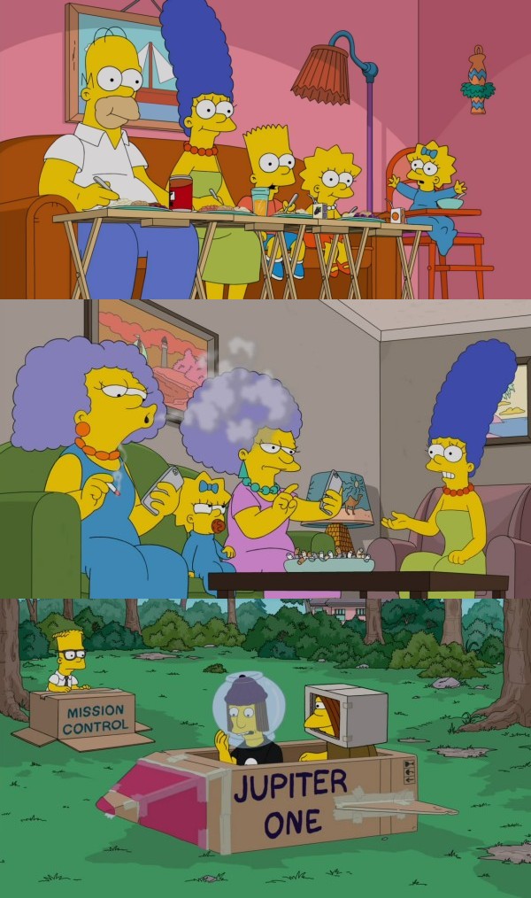 "Marge implements a limit on screen time for the whole family, only to realize she's the one addicted to screens." (IMDB) ![]() |