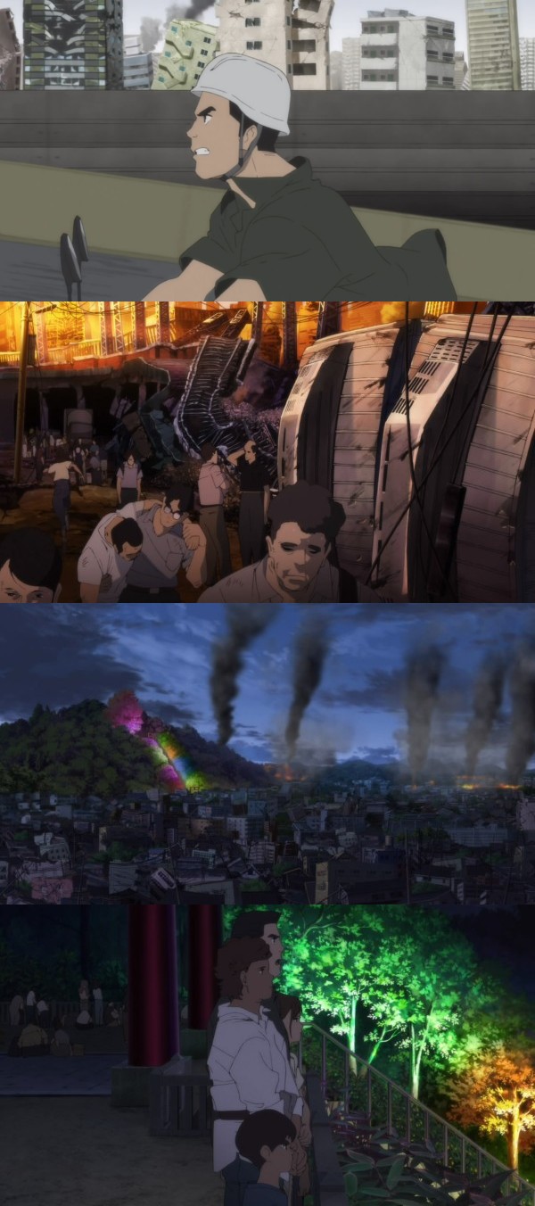 Wer denkt, er kann sich Sonntag Mittag mit Mutti ne schöne nette Anime Serie angucken, der hat sich hier getäuscht. Da ist von Minute 1 an SPannung in der Luft, fast so drückend wie bei Tschernobyl. Diesen Japanischen Stillleben-Stil, in dem in einem Szenenbild nur marginale Details Lebendig sind und der Rest des Bild starr ist, fand ich immer schon etwas merkwürdig. Aber ist hier absolut okay. "An ordinary family is put to the test as a series of massive earthquakes throw Japan into total mayhem. From director Masaaki Yuasa (Devilman Crybaby), the first anime adaptation of the bestselling science fiction novel by Sakyo Komatsu." Bissl was zum nölen, ich fand die Zeit zwischen Beben und dem Punkt, wo sich auf den Bunt beleuchteten Hügel die Familie wiederfindet in der Folge etwas zu schnell und dann ist Mari auch noch aufgetaucht... das Ende? Puh! Bei IMDB sieht es so aus, als ob es einen Englischen Dub gibt, ich hab's auf Japanisch. ![]() ![]() |