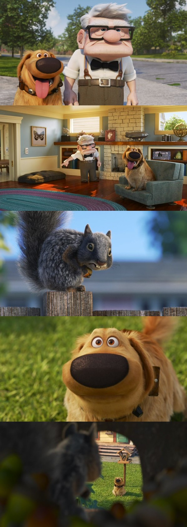 Dug verteidigt heute Helfenhaft das prallgefüllte Vogelhaus gegen das Eichhörnchen. Oder er versucht es zumindest - aber Eichhörnchen ist ein taffer Gegner. Fuck ist der cute - war er im Film ja schon. ![]() ![]() |