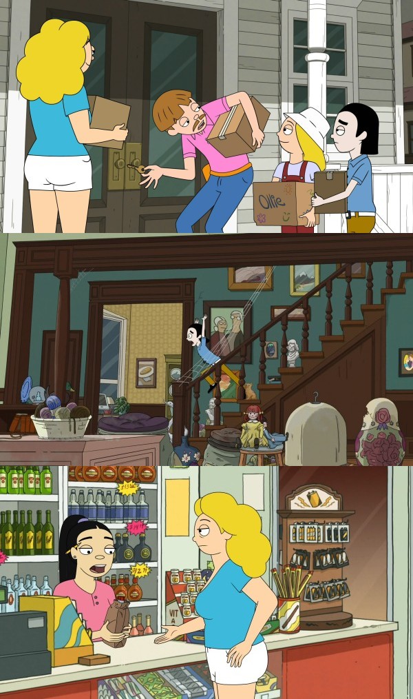 Man hat ja bei Animationsserien die Möglichkeit Sachen zu realisieren, die man bei einer realen Serie nur schlecht oder gar nicht machen kann oder will. Es gibt Serien wie Bob's Burgers, da funktioniert das mit einer normalo-Familie Super. Man muss natürlich noch ein paar Alleinstellungsmerkmale haben - hier z.b. das Burger-Restaurant in dessen Haus man auch gleich die Wohnung hat und drei freakige Kinder. Und die Geschichtan dazu muss man haben. Da gibt es keinenn Explosions-Weltall-Reisen-Shit nur ab und zu mal einen Fiebertraum. Jedenfalls, Harper House ist irgendwie gar nix. Okay, Mumien-Oma in Strapse im Bett und die Reaktion war schon funny, aber das war dann auch der einzige Lacher. In einer Serie in der eine Familie mit zwei Kindern in ein Addams Family Haus zieht. ![]() |