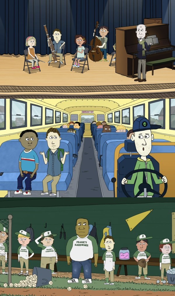 Is this the day I fistfight in front of my child!!? Sein Instrument? Das Fagott. Seine Kumpels? Nelson der Mitschüler, der Schulbusfahrer und Glenn, der örtliche Malldealer. Zeichenstil ist etwas gewöhnungsbedürftig, aber ich kann damit Leben. Humor stimmt erst mal im Piloten. ![]() |