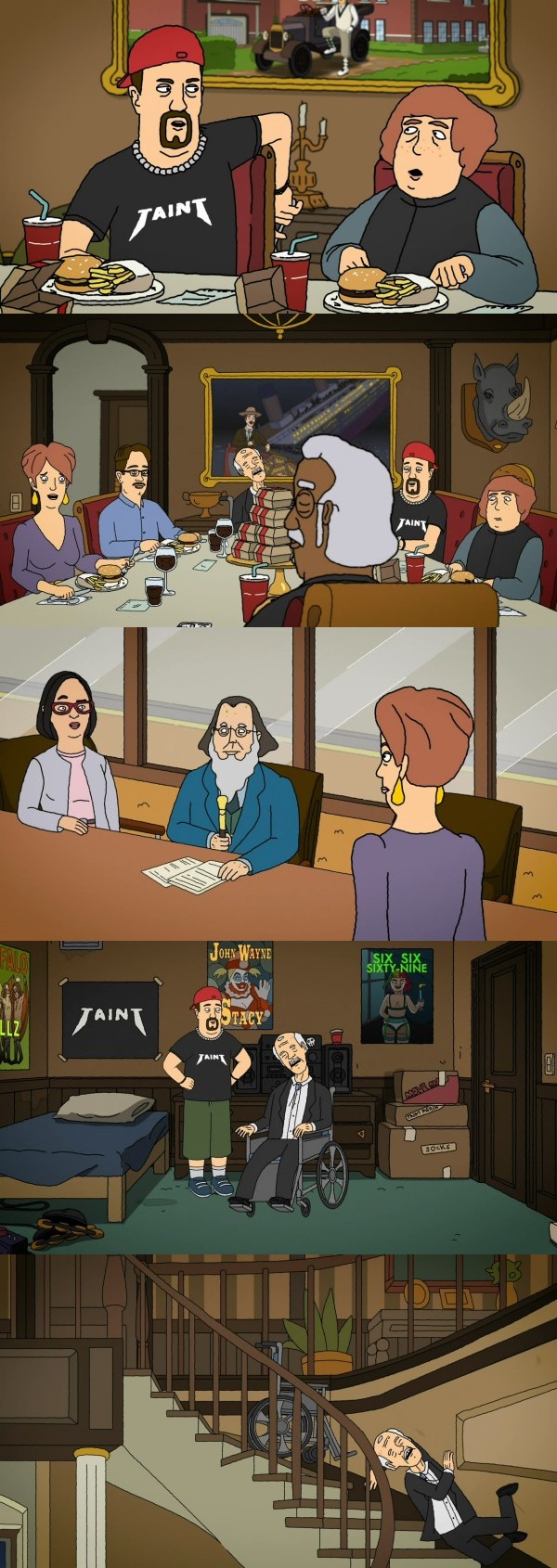 "Royal Crackers war einst der König der Snacks - doch das Imperium in Bakersfield bröckelt. Als der Familienpatriarch, der tyrannische Firmengründer Theodore Hornsby Sr., in ein "Superkoma" fällt, liegt es an dem Rest der Hornsbys, Royal Crackers wieder erfolgreich zu machen. Dumm nur, dass ihr Mangel an Talent und Geschäftssinn ihnen bei ihrem Vorhaben im Wege steht." Als Koma-Opi gefühlte dreissig Sekunden lang die die Treppen heruntersegelt, seinen Rollstuhl im Nacken der hinterher fällt und das irgendwie gar nicht mehr aufhören wollte, ist das ein guter Vergleich zur Folge heute. Nicht einmal gelacht. Nicht mal geschmunzelt. ![]() |