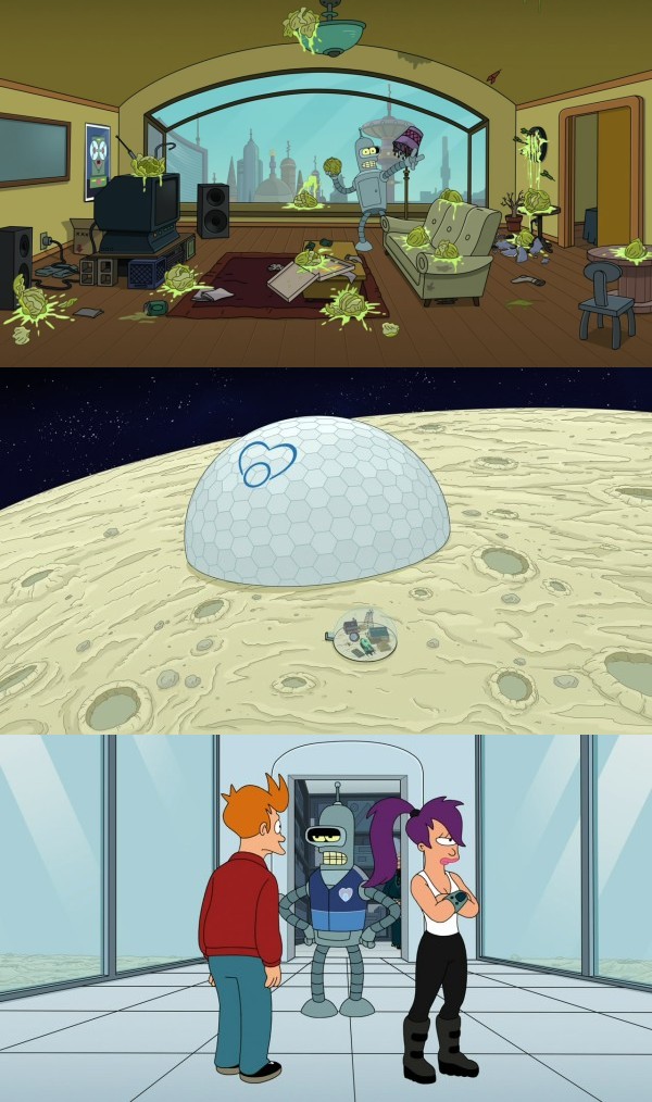 Ich will total gerne sehen, wie Leela bei Fry einzieht. Generell ist ihre Liebesgeschichte total toll. Und wie lustig die Szene war, als Fry und Bender sich gegenseitig mit Kohlköpfen in ihrer Wohnung beschmeißen. Aber wer will denn da irgendwelche Lieferungen in dieser Serie sehen? Meh. Und das mit Mumazon versteh ich nicht? Soll das Amazon sein? Warum nennen die das denn nicht Amazon? Bitcoin war doch neulich auch Bitcoin und nicht Momcoin. ![]() |