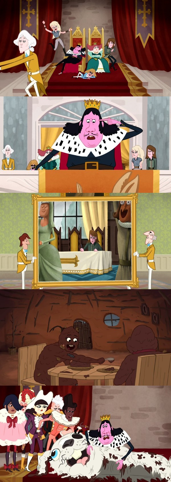 "Set in a contemporary world in a medieval kingdom, Long Live the Royals follows a fictional British Royal Family. King Rufus and Queen Eleanor and their children Peter, Rosalind, and Alex'as they honor the annual Yule Hare Festival. The family must battle having to rule their kingdom while maintaining a normal family at the same time. Meanwhile, the festival continues with the parties and feasts that comprise it." Finde jetzt die typisch zusammengestellte Nerv-Bullytruppe nicht sonderlich ansprechend -- wie den Rest der Folge auch nicht. Ist auch kein Verlust, gab nur vier Folgen als Miniserie. Jede Folge hat einen anderen Royal gezeigt. ![]() |
