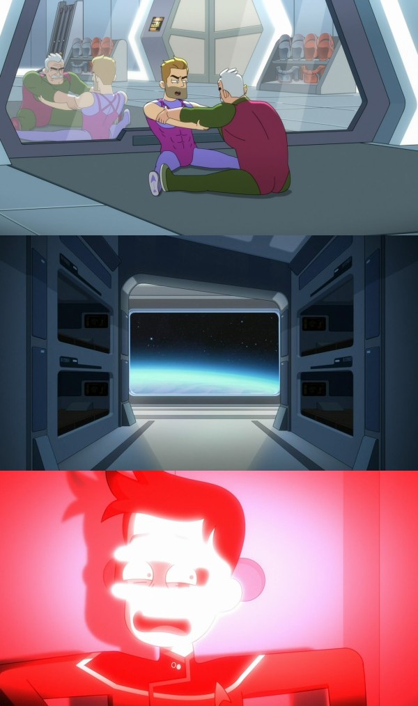 Gefolterte Remaner hinterlassen anscheinend immer die größten Flecken. "Sub Commander" -- dann haben wir es wohl mit Romulanern zu tun. Das unbekannte Schiff aus der letzten Folge -- Bye Romulaner! Die Szene mit den Gymnastikanzügen gab es doch mal in TNG. Hihi. Wie, die ziehen jetzt aus den geilen Lower Decks aus? Was soll das denn? Haha, Fähnrich Gary macht Auge bei Mariner im Sportoutfit. Boimlers neues Quartier direkt neben der stark rot leuchtenden... ...Warp-Gondel. Und auch noch mal die Frage, warum so ein Raumschiff... ...richtige Fenster hat, anstelle von Bildschirmen. Livik! Mmmh, Moopsy trinkt Knochen! Llllivikkk! Neues Quartier für Boimler. Direkt neben... ...dem Holodeck und das hat dünne Wände. "Wieso gibt es ein Zimmer zwischen zwei Holodecks?!" Moopsy hat die Kontrolle über die Raumstation. Und Boimler ein Schlafplatz in einer Jefferies-Rohre. Ist aber kuschelig da drin. Rutherford bettelt mit seiner X-ten Verbesserung wieder um seine Beförderung. Die er schon x-mal abgelehnt hat, damit er in der Nähe von Tandi sein kann. Hat jetzt aber ein Quartier mit Boimler UND Fensterdimmer. Schöne Folge. ![]() |