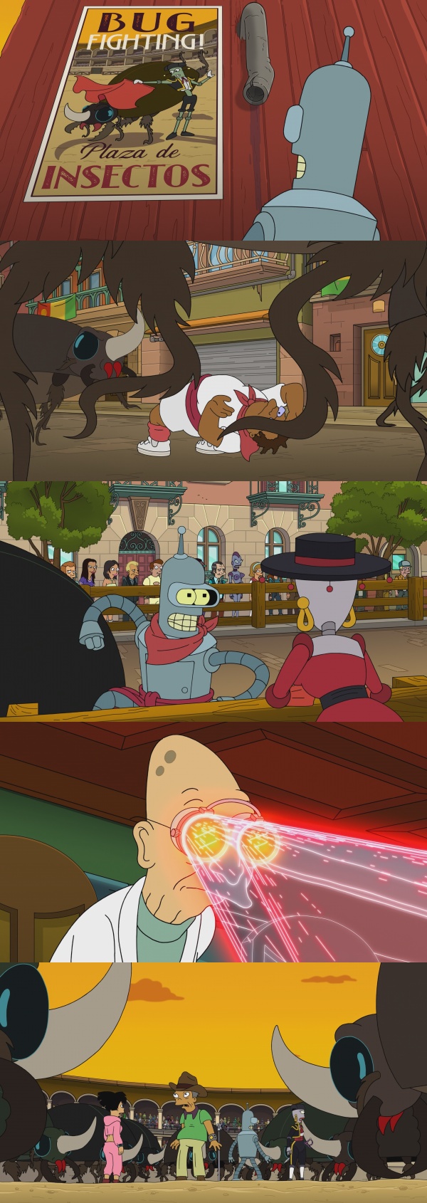 Amy ist auch so ein absoluter Null-Charakter in der Serie. Gab's nicht schon die ein oder andere Mars-Käfer Story? Also eine Pamplona Käferkampf-Folge. Setting inkl. Musik ist ganz nett. ![]() |