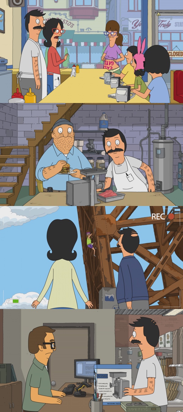 Ich war um 4:00 Uhr auf. Meine Uhren sind auf Europazeit. Die Katzen denken, wir leben in Paris. War natürlich ein schöner Moment, als die Kinder meinten, dass Gayle ziemlich cool ist, in dem Alter noch sowas machen zu können und sie gerne selber so wären. Und dann die Piano-Untermalung als Bob den Elektrischen Fleischwolf zurück bringt und darüber sinniert, warum er dann doch lieber den alten mit der Handkurbel behalten möchte, auch wenn es drei Mal so lange dauert. Schöne Folge. ![]() Die Fleischwolf-Geschichte hätte eine eigene Folge verdient gehabt. ![]() |