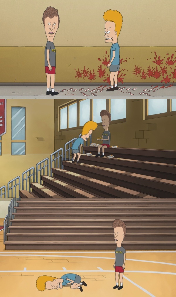 Ach, hätte gerne eine Schlägerei gesehen, in der Beavis irgendwie durch einen dummen Zufall gewinnt. Gar keine Schlägerei gegen den Schulbully ist aber auch ganz praktisch. ![]() |