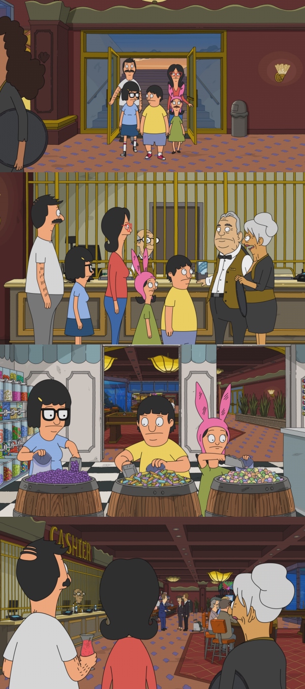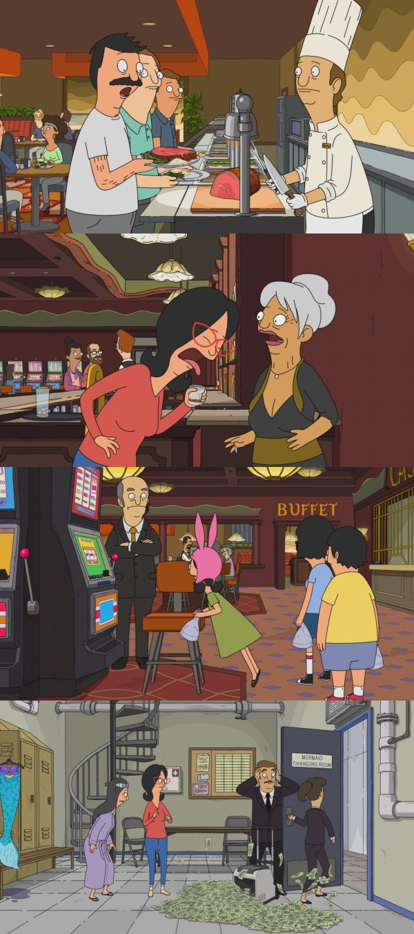 Olle Kasino-Chips von Opa einlösen und nicht nur feststellen, dass man eine Meerjungfrau als Halbtante hat, sondern die ganzen Old-Tymer das Kasino ausrauben wollen, während die Kids versuchen den einen Jackpot-Automaten zu finden und Bob im Kasino-Restaurant UNBEDINGT einmal den Braten anschneiden möchte aber Glen andauernd Nein sagt -- Geilo! ![]() Es gab in den frühen Folgen eine Keller-Kasino-Folge, die war auch geil, vielleicht ein bisschen Geiler weil richtige Kasino-Folge. Möchte den nächsten Bob's Burgers Film in Las Vegas spielen sehen! Ob's Kasinoteppiche in der Form - Trennung von Minderjährigen zu den Volljährigenspielen wirklich gibt, konnte ich nicht herausfinden. ![]() ![]() |